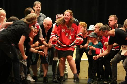 Nyskrivna pjäsen Spelet om Örnsköldsvik har snart premiär vid Folkan Teater i Örnsköldsvik. Den innehåller både historia, drama , komik och fiktion. -Den här föreställningen är något Öviksborna aldrig tidigare upplevt! säger Sofia Andersson, en av manusförfattarna och regissör vid Teater Soja.Foto /repetitionsbild Fredrik Näslund