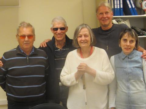Kursledaren Peter Lundqvist förklarar för nyfikna synskadade kursdeltagare från Västernorrland.