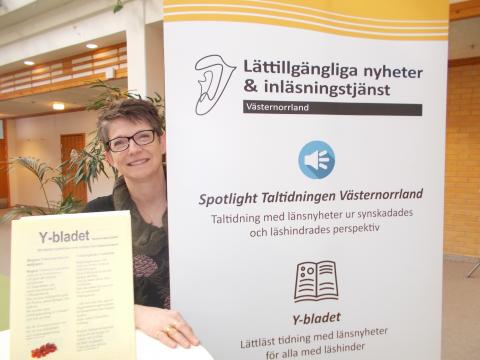 Region Västernorrland erbjuder synskadade och läshindrade taltidning, lättlästa nyheter och inläsningstjänst i olika format. – En viktig och betydelsefull service som vi ska värna om, säger Marie Westman, som deltog som utställare under Funkisveckan i Örnsköldsvik.