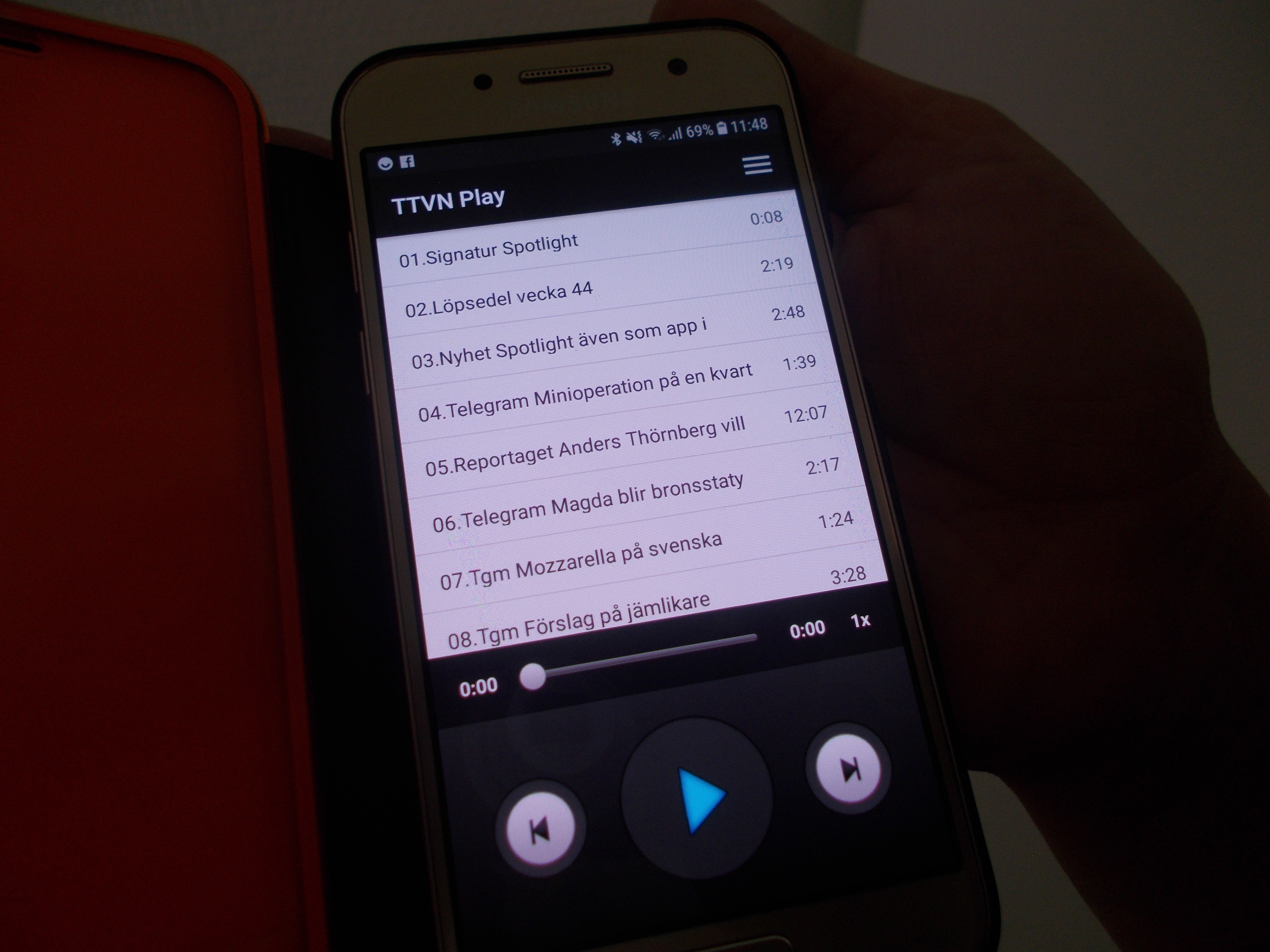Spotlight på ny app för taltidningsläsare 2018-10-29 Nu kan Spotlight även läsas i android mobiltelefon. Appen heter TTVN Play och där finns senaste numret och alla arkiverade nummer av Spotlight tillgängligt. https://taltidningenvasternorrland.se/wp-content/uploads/2018/10/2018v44_03nyhet-spotlight-ven-som-app-i-android-mobil.mp3
