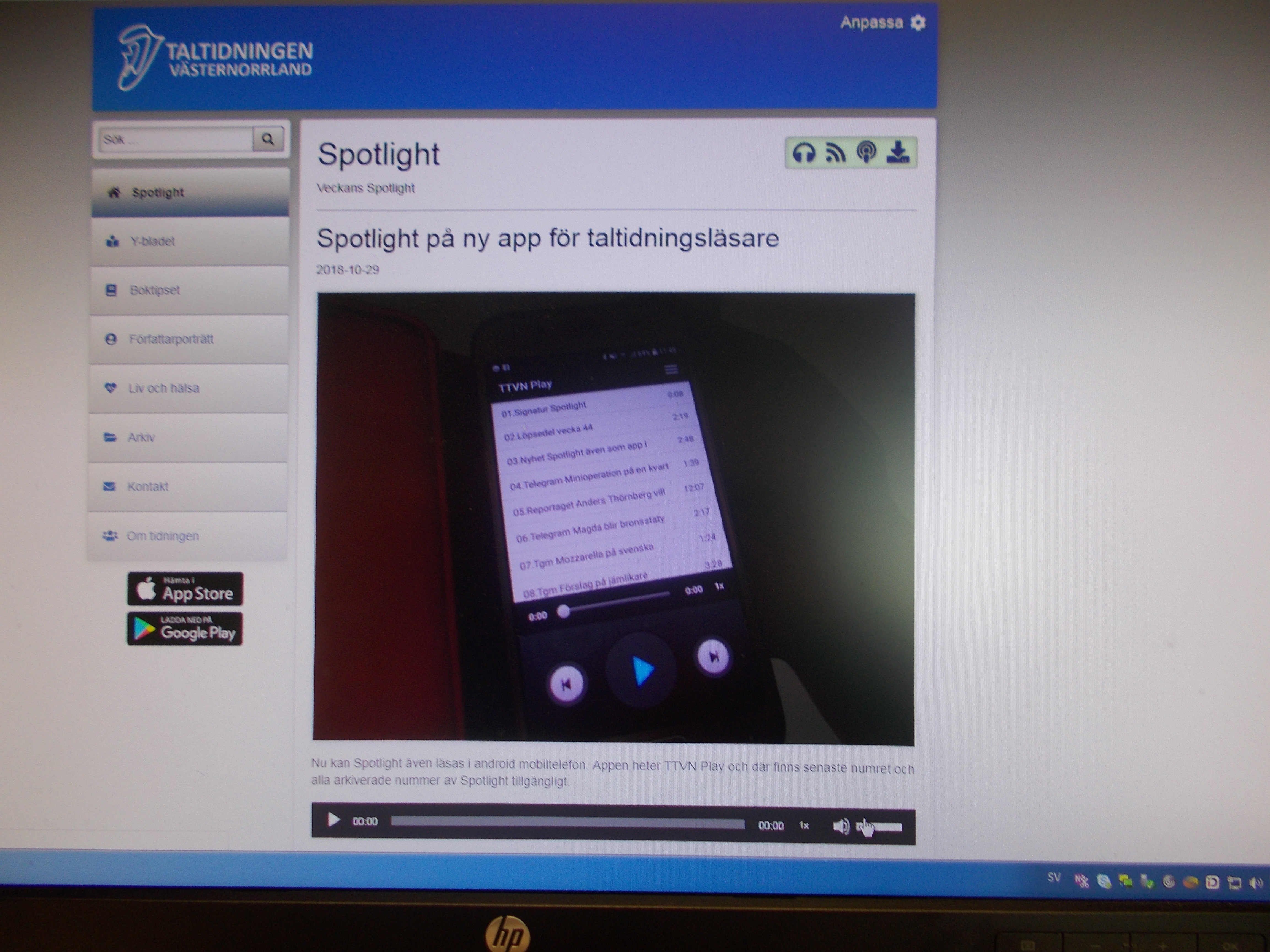 Taltidningswebben i ny kostym 2018-11-05 Taltidningswebben har t ex fått en sökfunktion för arkivet både för Spotlights inslag och Y-bladets artiklar. Den synsvage läsaren kan också anpassa sidorna genom att välja typsnitt, teckenstorlek och bakgrundsfärg. https://taltidningenvasternorrland.se/wp-content/uploads/2018/11/2018v45_03taltidningswebben-i-ny-kostym.mp3