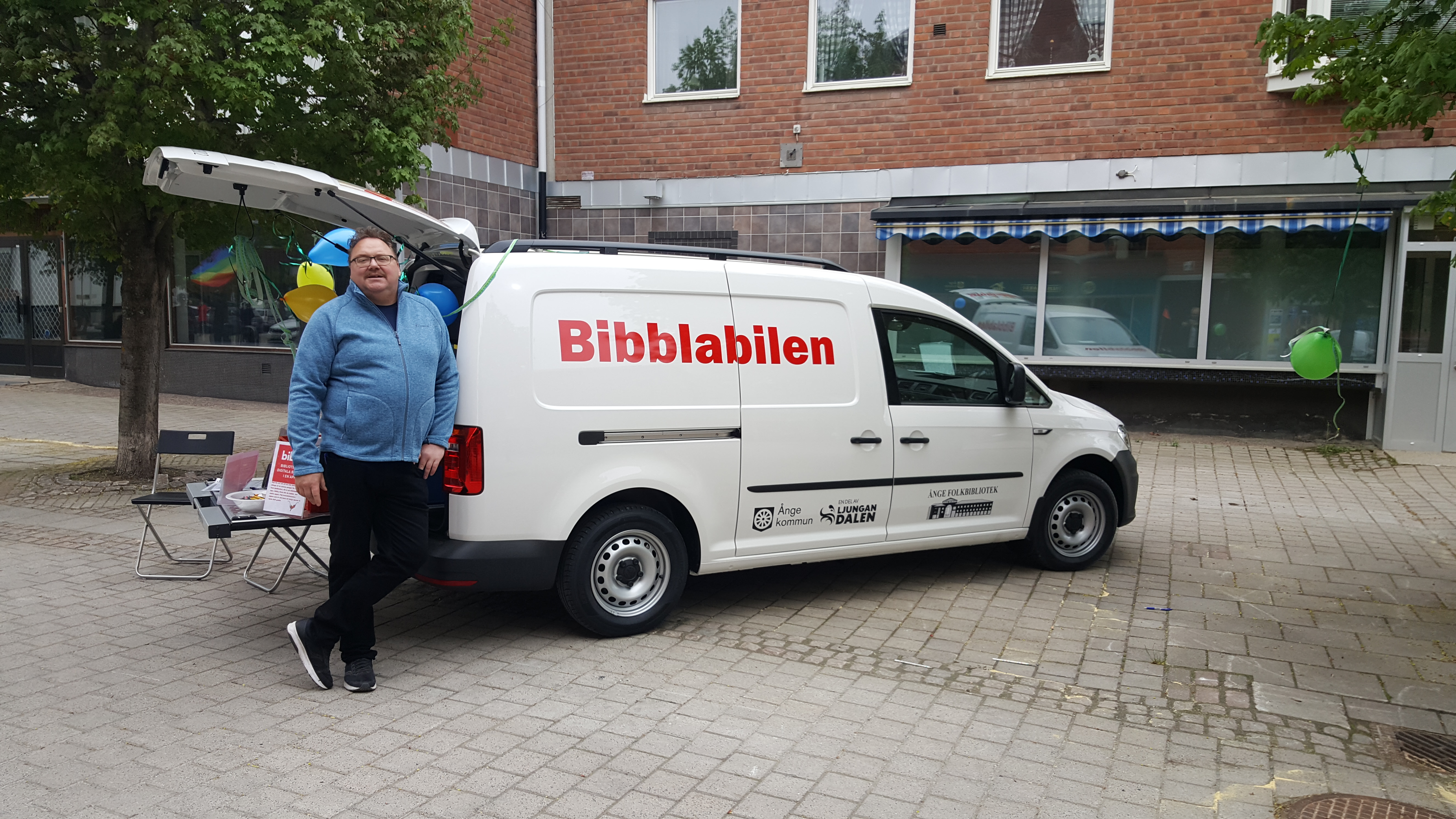 Bibblabilen presenterad på Kulturnatten i Ånge 2019-05-25 Nya Bibblabilen i Ånge lanserades lagom till firandet av Kulturnatten. Mikael Jonsson är förare och glad att kunna åka runt i kommunen och erbjuda allt ifrån boklån till enklare digitala tjänster. Foto: Anton Eldh https://taltidningenvasternorrland.se/wp-content/uploads/2019/05/2019v21_kulturnatten-i-nge.mp3