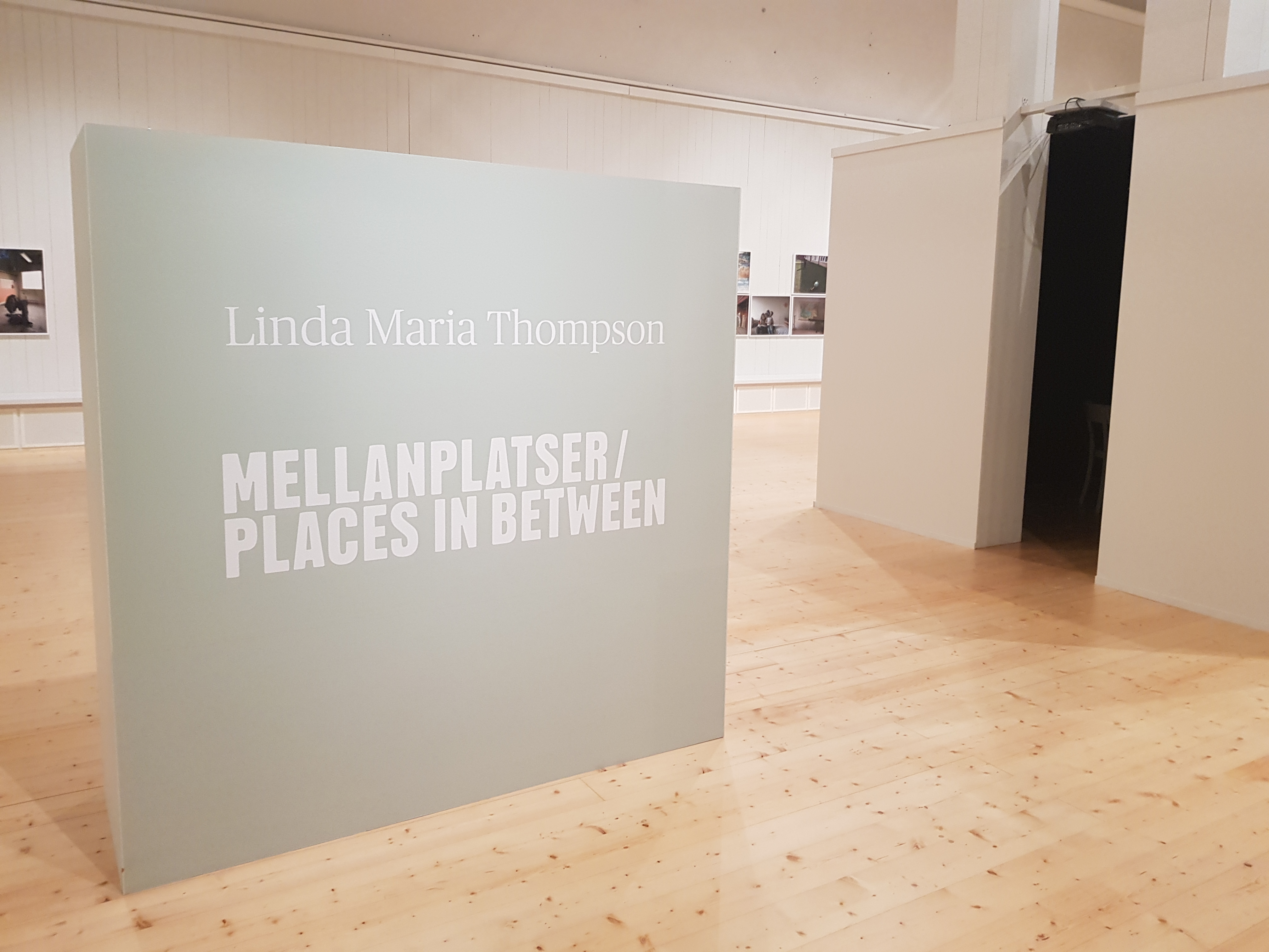 Linda Maria Thompson presenterar egna foton på utställningen Mellanplatser/Places in between på Västernorrlands museum i Härnösand. Utställningen handlar om att resa eller flytta av fri vilja eller för att man måste. Om att höra hemma på flera platser eller ingen plats alls. Linda Maria delger i bilder och i engelskt tal olika personers berättelser. Utställningens sista dag är den 12 januari 2020.