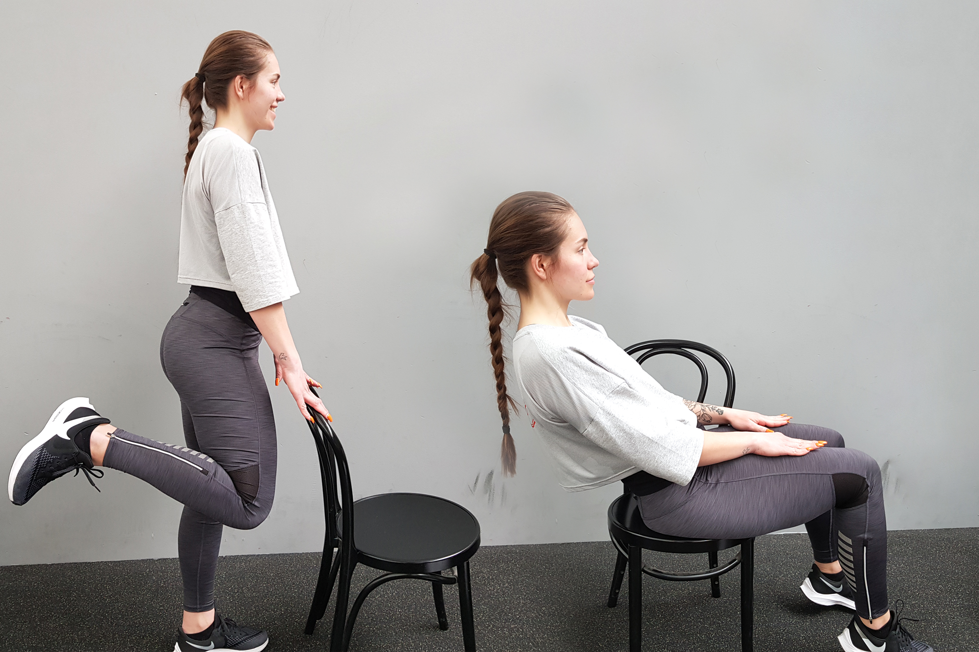 Del 1 i en serie om stolgympa för dig som vill träna på ett enklare sätt med hjälp av en stol. Agneta Bergqvist vid Friskis och Svettis i Sundsvall instruerar. Första delen handlar om uppvärmning och rörlighet. På bilden: Erica Bergqvist som visar vissa övningar.