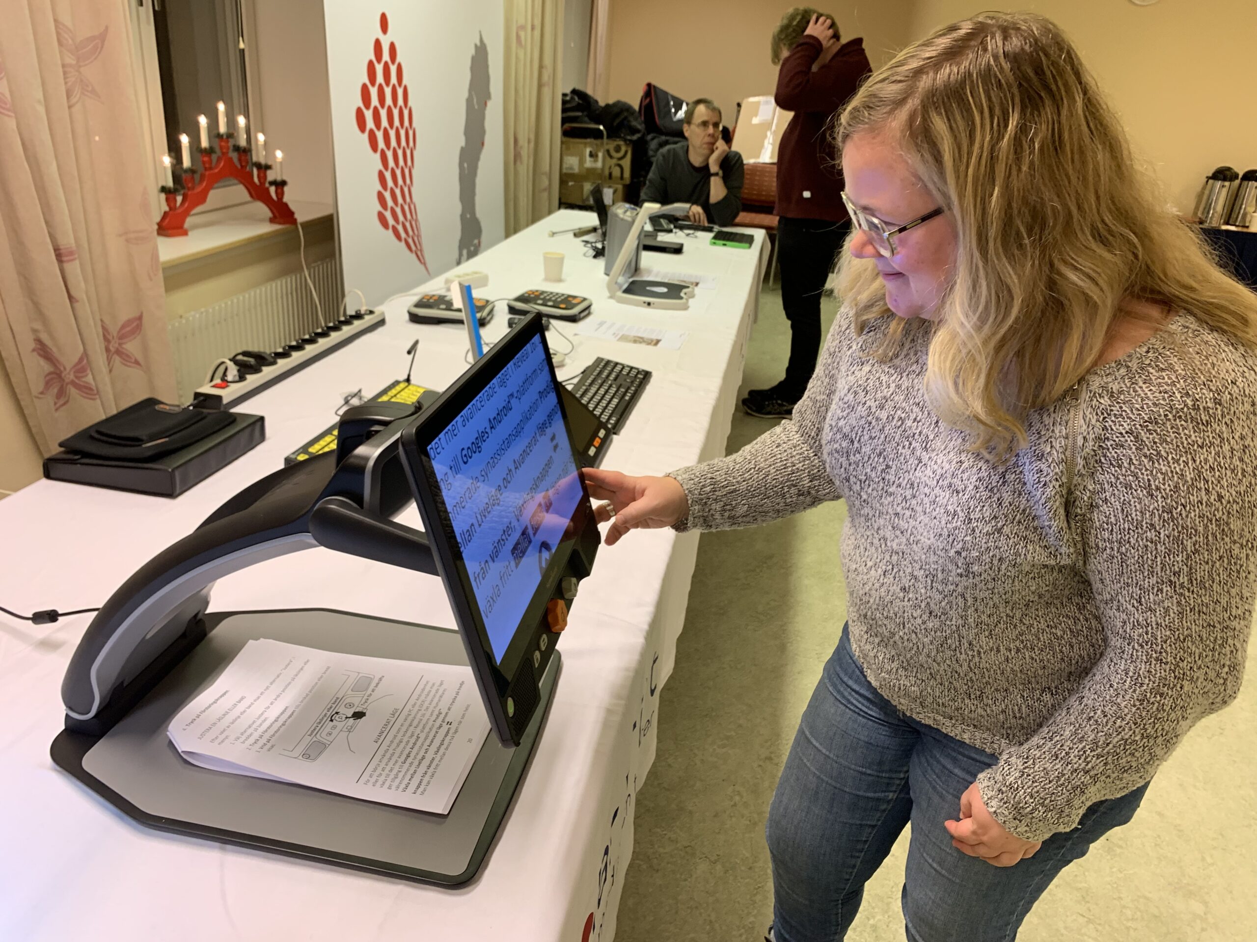 Hjälpmedelsvisning i Härnösand 2021-12-14 Hjälpmedelsvisning för synskadade i Härnösand lockade ett 15-tal till demonstration av synhjälpmedel. Foto Polar Print https://taltidningenvasternorrland.se/wp-content/uploads/2021/12/2021v50_06hjlpmedelsvisning-i-hrnsand.mp3