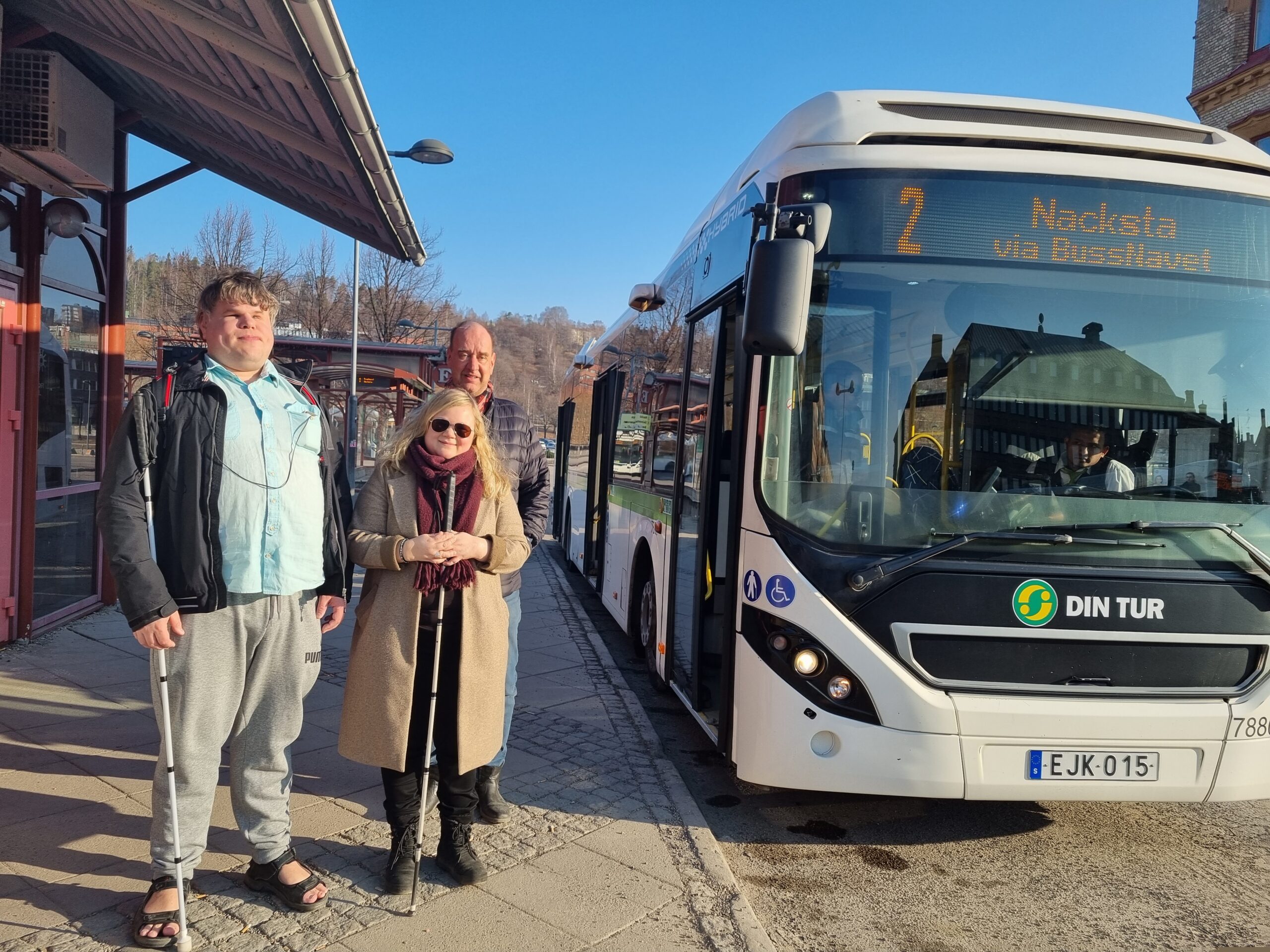 Synskadade testar busshållplats utropen och displayerna i stadsbussarna i Sundsvall. Peter Tjernberg, Frida Karlander och Örjan Wiklund, är besvikna men inte förvånade, att utropen är obefintliga på de 10 bussarna som testades nyligen.